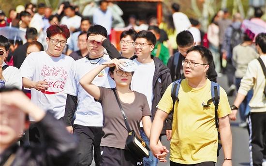 3月2日,全省多地最高气温冲破30℃。图为当日杭州西湖边的不少游客穿上了短袖。 记者 潘海松 摄