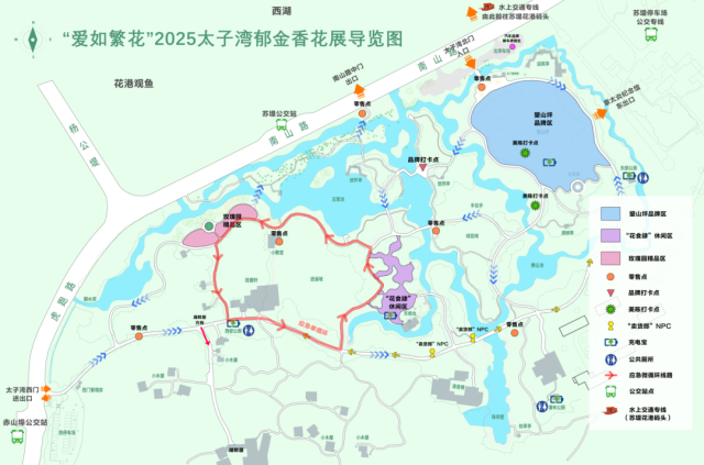 同时,为了让大家的出行更加便利,凤凰山管理处联合市公交公司和景区游船公司推出了公交专线和水上公交专线,在花展期间,打造了花事活动专属“水陆交通圈”。