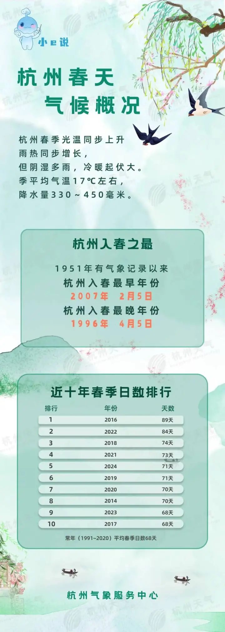 今天开始,杭州正式进入气象学意义上的春天。