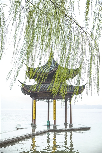 西湖集贤亭,春柳如帘。 记者 陈中秋 摄