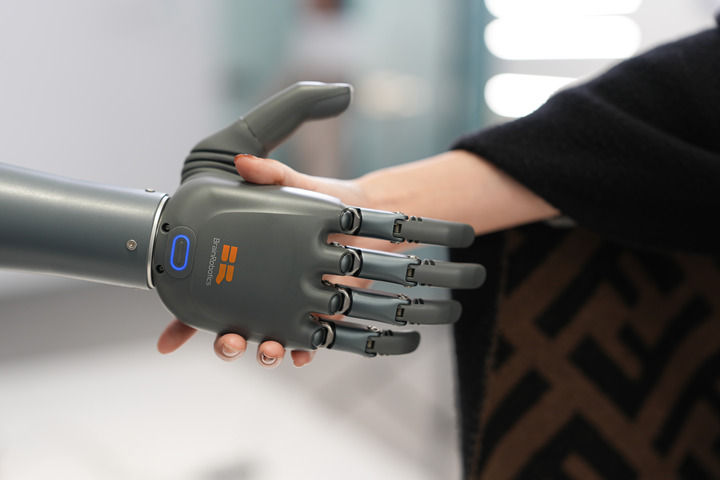 浙江强脑科技有限公司工作人员在演示智能手臂(2025年2月26日摄)。新华社记者 黄宗治 摄