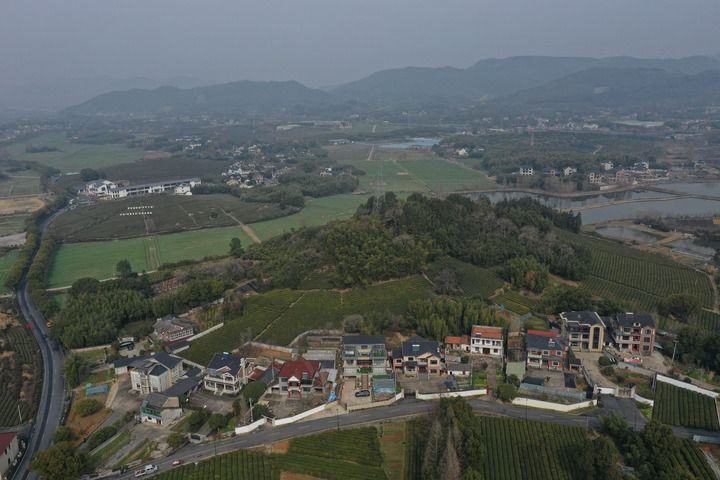 2月26日无人机拍摄的杭州市余杭区径山镇小古城村。新华社记者 黄宗治 摄