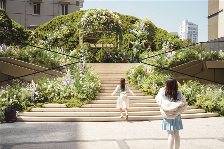 明日,为期三天的杭州大厦嘉年华开启,届时,主题为“繁华秘境”的花园展也将于同地浪漫登场。花园展将法式春日野趣搬进都市生活,浪漫又神秘,展览将持续到今年6月。图为昨天,游客在已经布置到位的“繁华秘境”的花园展上拍照。