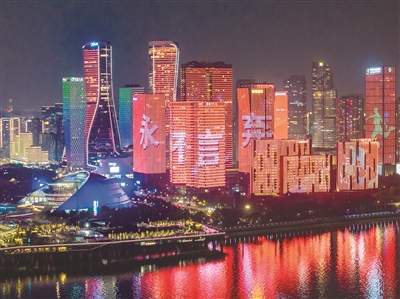 国足主题灯光秀 记者 夏阳 摄