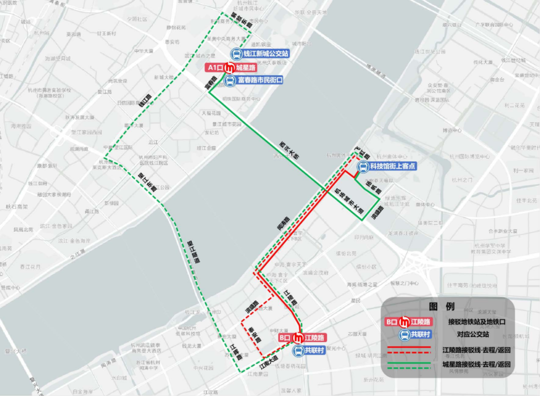 公交接驳:在飞虹路科技馆街交叉口设置2条公交接驳专线将观众分别送至地铁1号线江陵路站、地铁4号线城星路站。