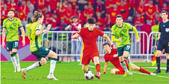 25日的杭州奥体中心体育场,因为足球“盛开”中国红。当晚7时,2026年美加墨世界杯亚洲区预选赛18强赛C组迎来第八轮角逐,中国男足国家队主场迎战澳大利亚队,吸引70588名观众到来,创造了中国足球赛事上座人数的新纪录。