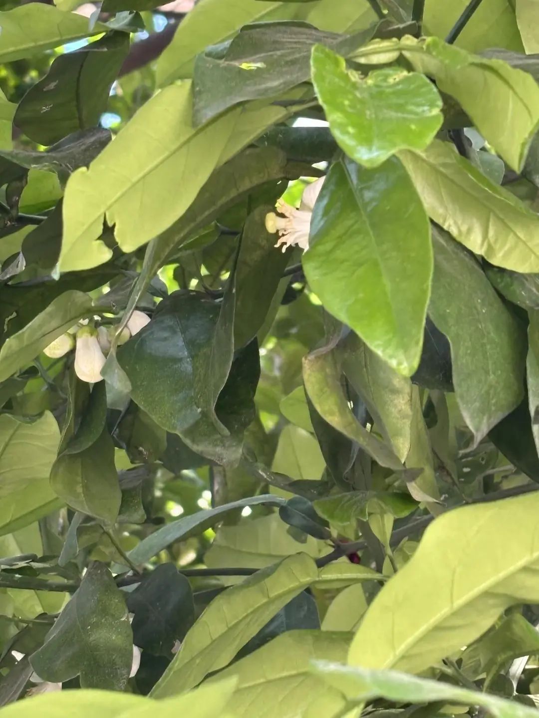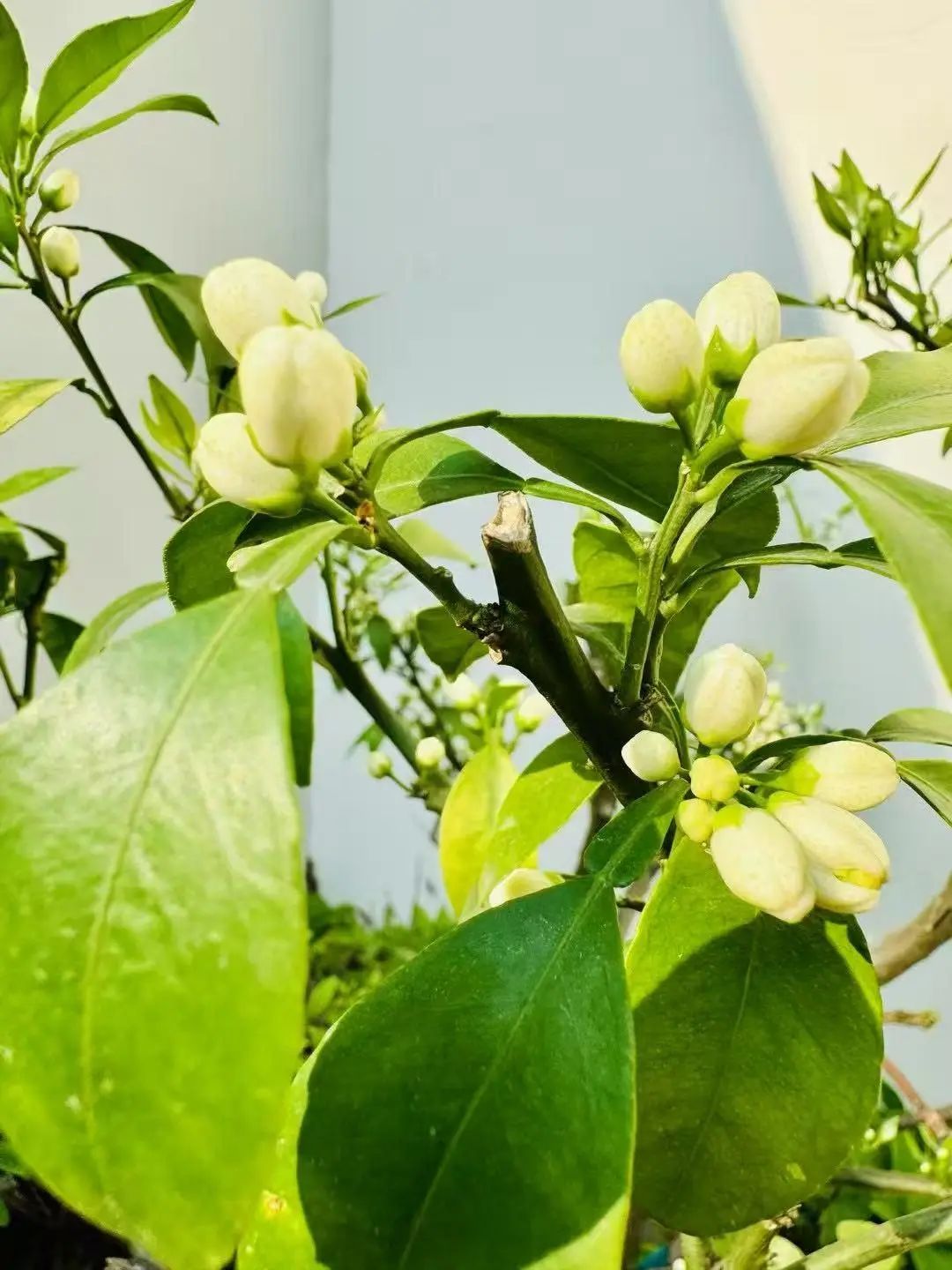 种在杭州城西的象山红美人也开出了白色的圆鼓鼓花朵。主人陈先生忍不住拍了两张美图,晒了朋友圈:“小院弥漫着橘子花的清香。”