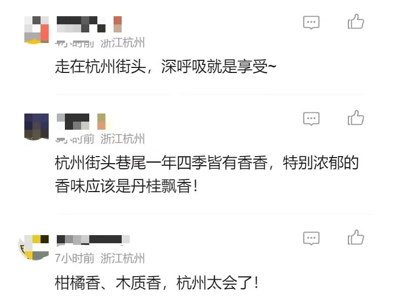 杭州的香气让网友纷纷点赞,不少人表示,杭州“真香”上线,沁人心脾!