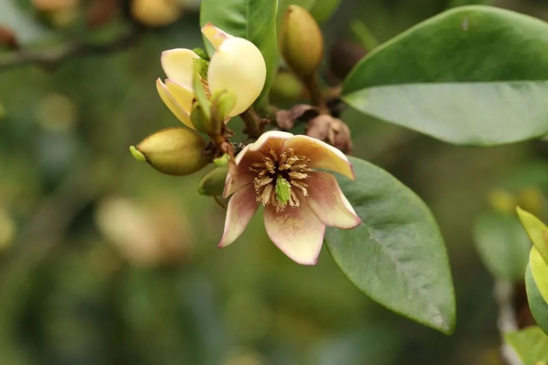 而含笑在杭州种植普遍,常见于各大公园。含笑属于木兰科,高2-3米,花期3-5月。它的香味非常独特,是香蕉味的,杭州人叫它“香蕉花”。含笑花朵呈淡黄色,比较小只,花量却很大,一根枝条上有很多朵花。盛花期时,走进杭州植物园园区香气弥漫,宛如走进香蕉园。