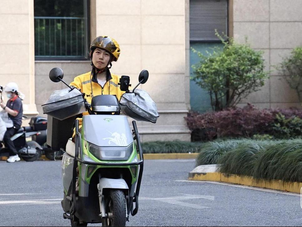 送外卖途中的文景。潮新闻记者 于诗奇 摄