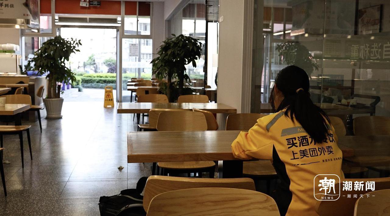 文景在自选快餐店内休息。潮新闻记者 于诗奇 摄