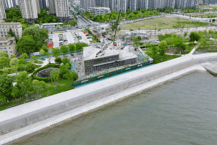 海塘安澜工程项目配套建筑包含7组共9个沿江单体建筑(其中4个为管理服务用房),单体分布全长约3.5千米,是融合景观、文旅、休闲、交通、市政于一体的综合性海塘工程,每个建筑节点都被赋予了独特的潮涌意象。一起看看项目建设情况吧!
