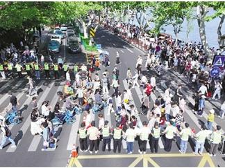 西湖北线,一直是西湖景区人气最旺的旅游目的地之一。这两天,断桥“最美人墙”再度如约而至,送上“安全感”满满的贴心服务。西湖景区公安分局岳庙派出所联合“西子义警”,又一次为游客筑起了一道流动的“安全屏障”。他们用无私的付出与温暖的守护,让游客的安全得到切实保障,也让他们感受到杭州这座城市的温度。