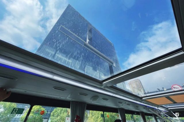 双层巴士的上层采用了全景天窗设计,乘客可以在行驶过程中,360度无死角地欣赏沿途的风景。当巴士缓缓行驶在西湖边,微风拂面,美景如画,仿佛时间都静止了。