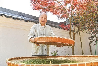 “不管技术怎么更新,都不能忘了祖辈传下来的手艺,应该时时刻刻处处怀有一颗敬畏之心。”梅师傅说,做好茶,需要技艺,也需要耐心。就拿摊青来说,摊晾的时间一定要到位,不要求快,慢工出细活。炒茶也一样,一斤鲜叶他会分四五锅杀青,虽然速度慢,但却是炒出好茶的关键秘诀。