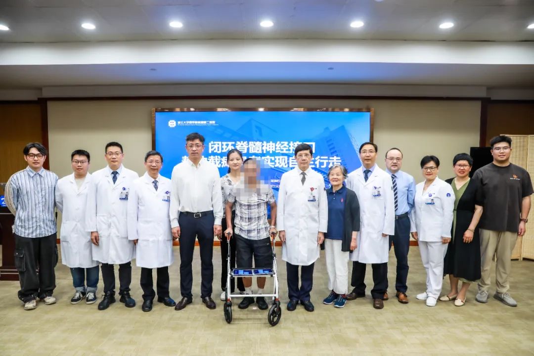 被诊断为完全性截瘫的金大叔,经过治疗后站起来了!近日,全国首例闭环脊髓神经接口植入手术在浙江大学医学院附属第二医院成功完成,手术后的金大叔已实现自主行走,一起来看。