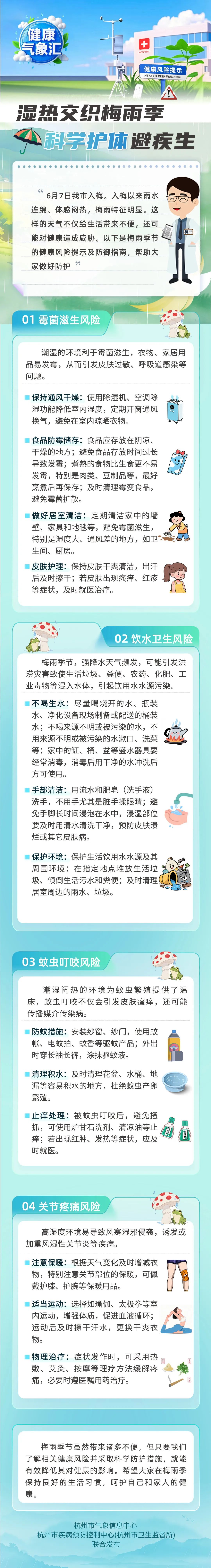 湿热交织梅雨季,科学护体避疾生。以下是梅雨季节的健康风险科普提示及防御指南,帮助大家做好防护↓↓