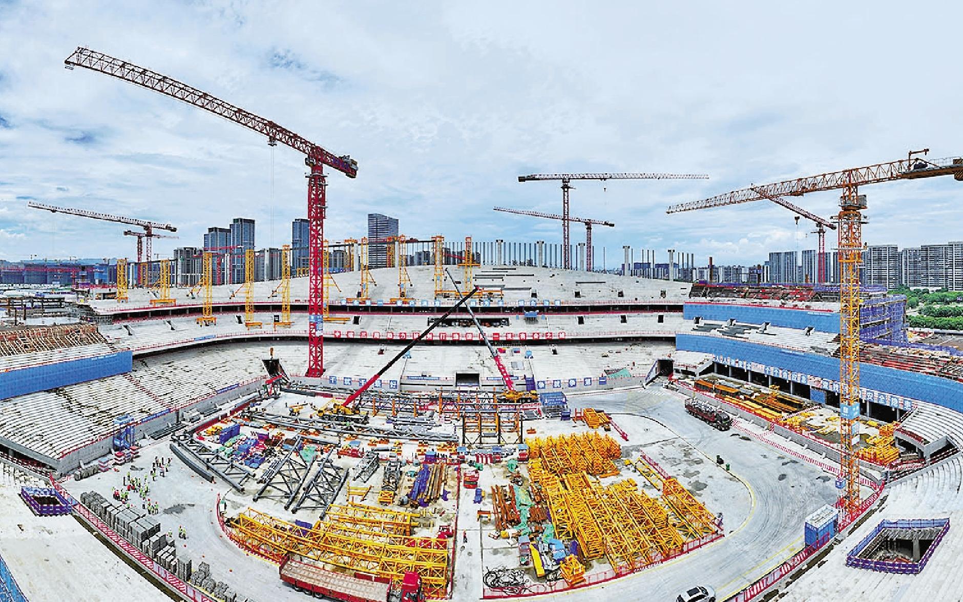杭州日报讯 6月14日上午,余杭国际体育中心足球场项目首榀重27吨的屋盖钢结构桁架吊装成功,标志着该项目进入全专业工程施工阶段,为下一道工序索结构施工奠定了基础。