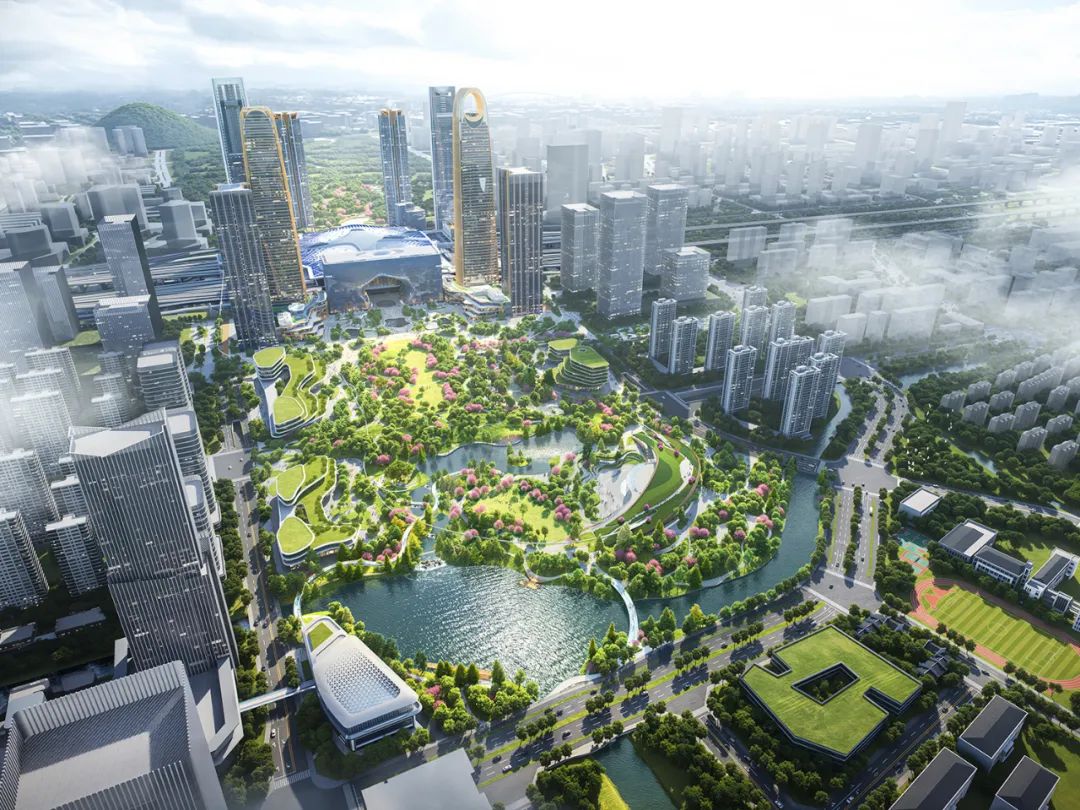 预计到2027年,云门公园将全面建成,成为集文化展示、交通换乘、综合服务以及滨水休闲等功能于一体的枢纽综合门户空间,并将联动云城核心区超高层建筑群与城市综合体,构筑起一片活力四射的都市绿洲。