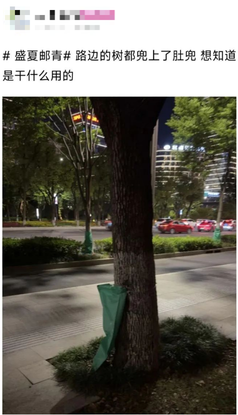 一些路边的树,兜上了“肚兜”