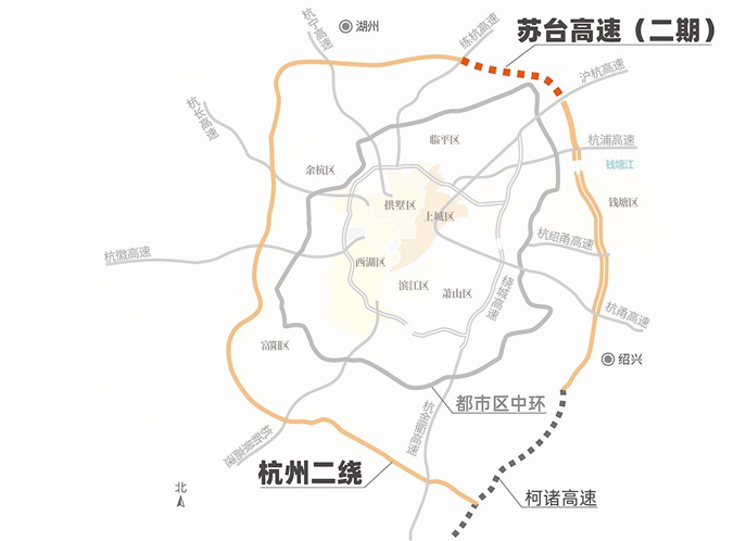 苏台高速公路南浔至桐乡段及桐乡至德清联络线(二期)是杭州二绕的组成部分,属于二绕中的“东北角”。这一路段通车后,杭州二绕“缺失的东北角”将被补上,距离“成环”更近一步,而杭州离“三环城市”也同样更近了一步。