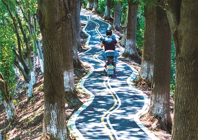 7月1日中午,打开手机里的天气预报软件,显示实时气温是35°C,但在这条树荫小道上的我,没有感受到炎热。