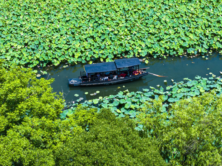 两处摇橹船都是夏日限定款,也就是说,只有在这个季节,你才能体验到这个“神仙画面”。