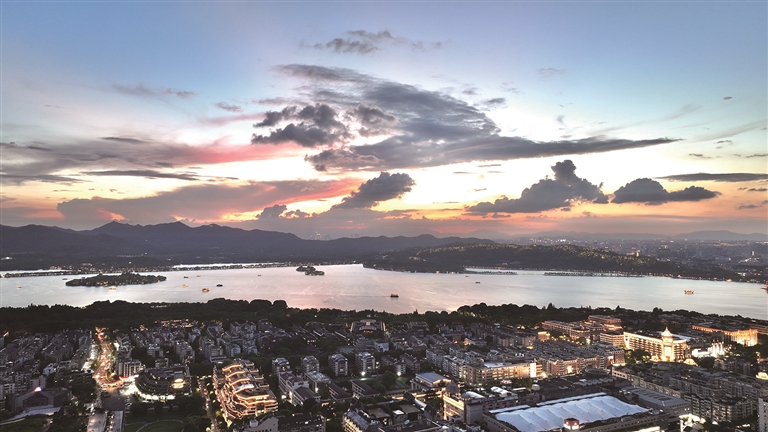 昨日傍晚,杭城迎来绚烂的晚霞 记者 严嘉俊 摄影