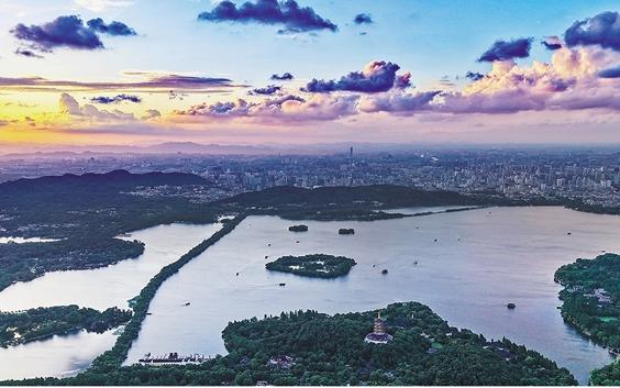 这几天,由于天气系统的变化,杭州傍晚迎来了绝美晚霞。每天傍晚,都有很多朋友来到西湖边,等待这梦幻一刻。当霞光布满天空,只见晚霞与水天共成一色,真是流光溢彩,让人震撼。