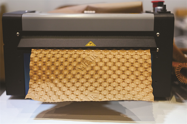 “压泡纸环保轻便,占地空间小,节省纸箱成本,在欧美市场非常受欢迎。”包旺展位负责人介绍,“别看它的原材料是纸,经过压泡工艺,可以用来包装易碎、贵重物品,很安全。”