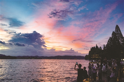 台风来临前,昨天傍晚,西湖上空出现“丁达尔现象”。 摄影 商报记者 项凯