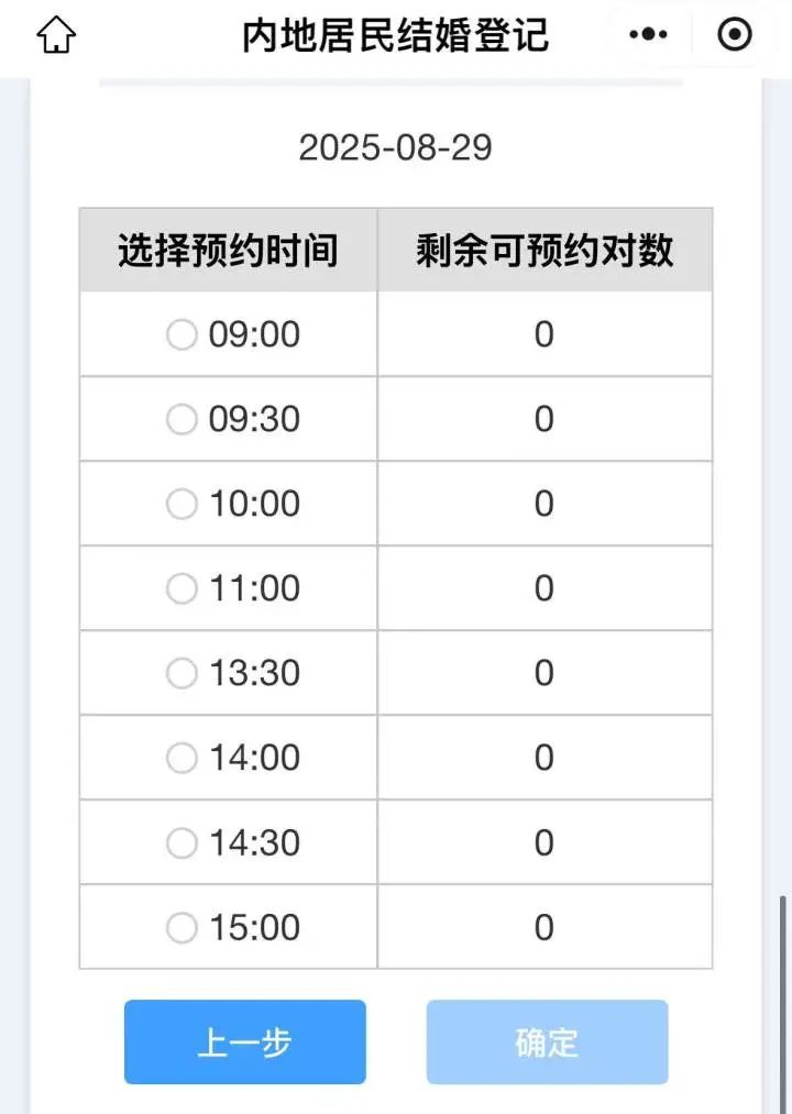 提前一个月,也就是7月29日0点一开抢,上城区的号就秒没。余杭、萧山也是如此。此外,截至8月18日21点,因8月30日、31日刚好是双休日,这两天正常开放婚登的几个主城区也已都无号可约。