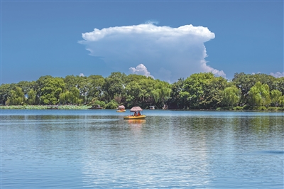 昨天是处暑节气,杭城高温依旧,仍有不少游客泛舟西湖。 记者 陈中秋 摄