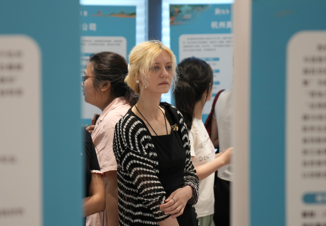 6月28日,2025年杭州市人工智能专场招聘会举行,120多家人工智能相关企业现场推出1700多个工作岗位。图为求职者在查看岗位需求信息。
