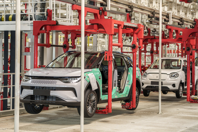 在零跑汽车生产车间,车辆正在转入最终装配线。