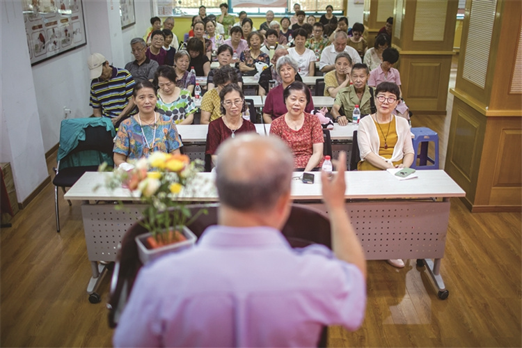 孔胜东为杭州市癌症康复协会的会员和志愿者授课