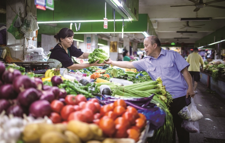 孔胜东在买菜时被一位市民认出并接受合影请求