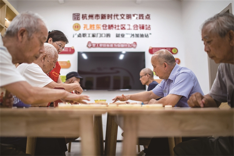 杭州市拱墅区孔胜东公益事业发展中心,孔胜东和居民下棋。