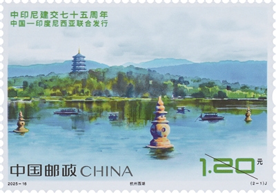 本次与印度尼西亚联合发行的《中印尼建交七十五周年》纪念邮票1套2枚,邮票图案名称为“杭州西湖、布拉坦湖”。全套邮票面值2.40元,计划发行数量450万套。