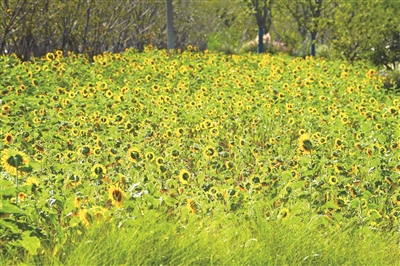 “向日葵从8月下旬开始陆续开花,最近经常有游客来打卡赏花。向日葵的花期比较短,预计还有10-15天就谢了。”园区相关负责人说,“想要来看向日葵的市民朋友,要抓紧时间了。”