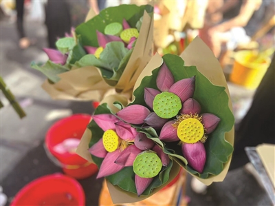大马弄双胞胎阿姐店的荷花早市 卖到这个月底