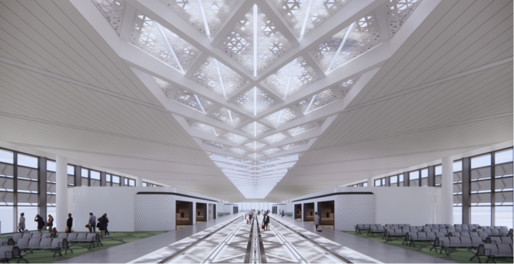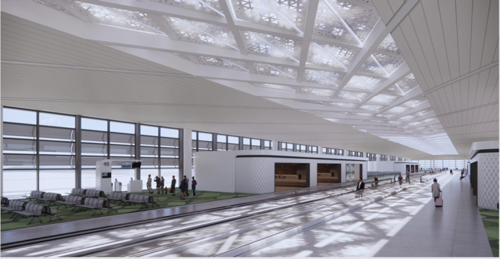 从功能规划来看,地上1层将作为国内远机位候机区,为旅客提供宽敞舒适的等候空间;地上2层则采用国内旅客出发、到达同层混流设计,可有效提升商业利用率,减少旅客中转流程,提升出行效率。