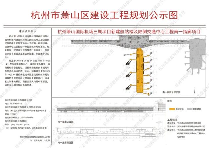 近日,杭州萧山国际机场三期项目新建航站楼及陆侧交通中心工程南一指廊工程,正式获杭州市规划与自然资源局建设项目批前公示。