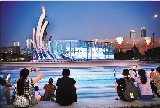 10月5日,位于杭州奥体中心西北角、占地约1万平方米的火炬公园正式向公众开放。火炬公园还原呈现杭州亚运会开幕式中的主火炬塔升降及点燃的场景,结合灯光互动设施展现“数字人”舞台效果。今后每周五、周六及法定节假日17时50分、18时50分将安排两场亚运火炬光幕表演,每场约10分钟(大型活动期间暂停)。