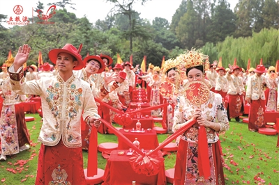 10月7日,第27届(2025)中国国际西湖情五粮液玫瑰婚典浪漫上演,来自国内外的100对新人相约杭州,共同体验浪漫的中式传统婚礼。