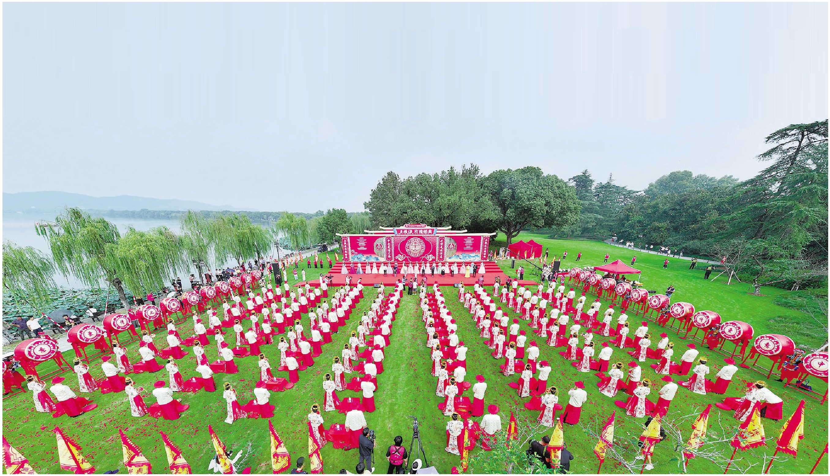 “我们希望通过这场传世婚典,为海内外新人留下难忘而甜蜜的回忆,向世界展示‘爱情之都’杭州的深厚文化底蕴。”婚典组委会主任、总导演王松法表示,婚典将助力和美婚恋价值观与中式婚俗文化在世界舞台绽放动人光彩,也为杭州“爱情之都”的盛誉,再添一抹浪漫色彩。