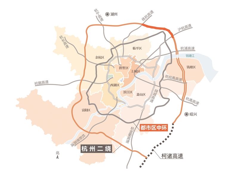 中环在杭州各辅城间形成快速交通环线