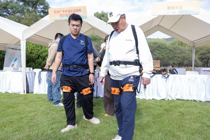 蔡宝珍体验的外骨骼机器人,来自杭州智元研究院。现场工作人员介绍,这款产品真正的“黑科技”,在于通过AI深度学习,设备能够感知使用者的体态和行动,继而做出相应动作,实现“心有灵犀”。“它能实现髋关节抬腿助力,行走时肌肉疲劳度能降低30%左右。”该工作人员说。