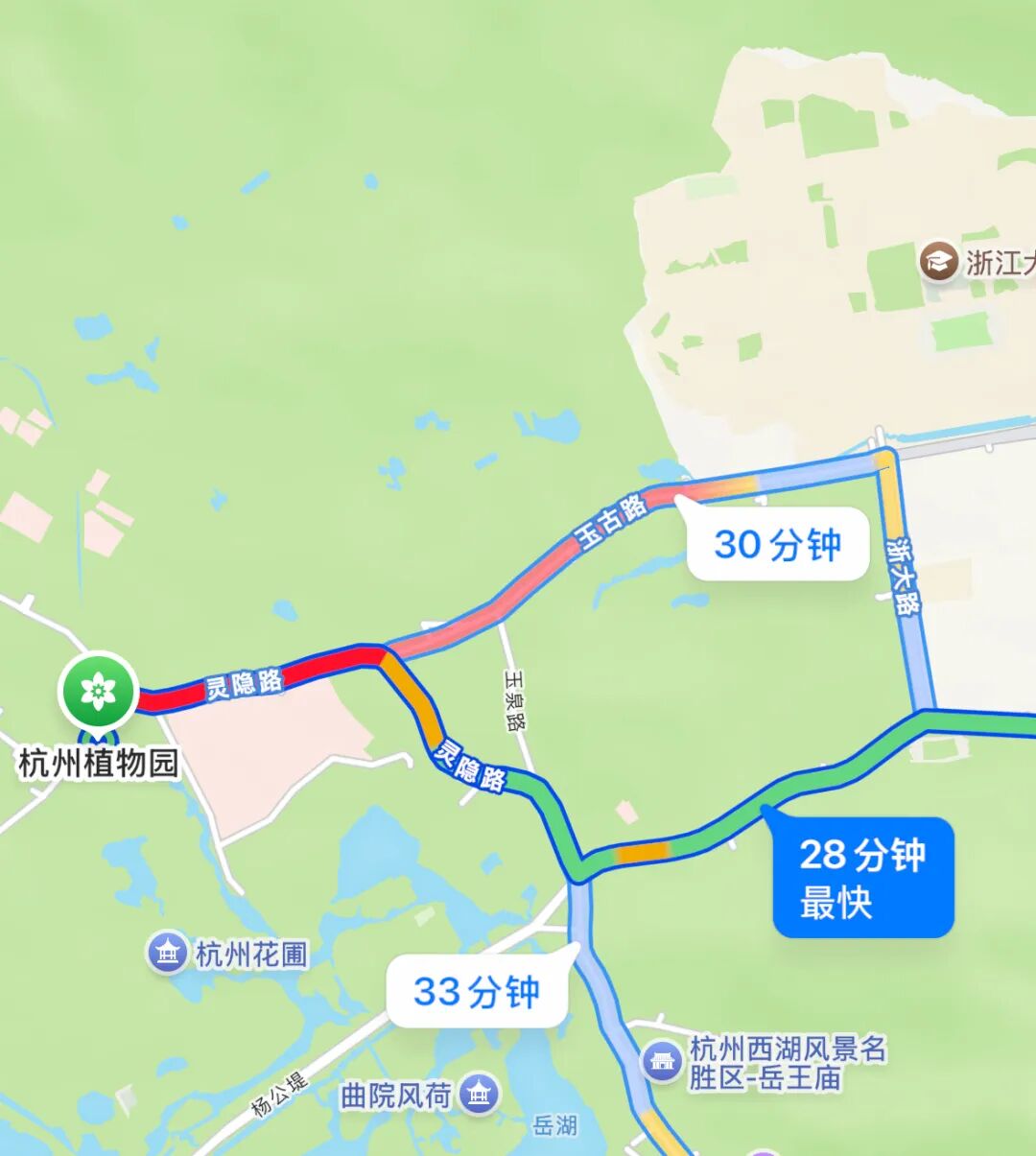 植物园附近的路线仍是红色