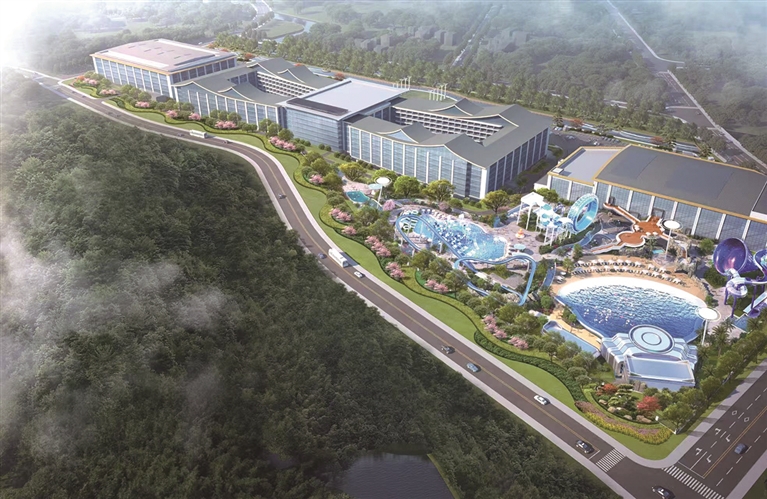 项目总用地面积约145亩(96667平方米),其中平行世界酒店规划有1200余间客房,并配套超1.6万平方米的国际会议中心,内含多个无柱宴会厅,未来具备承办大型国际会议、行业峰会及婚礼庆典功能;室内外水乐园约3万平方米,将实现四季恒温运营,旨在打造全季狂欢的水上娱乐目的地。